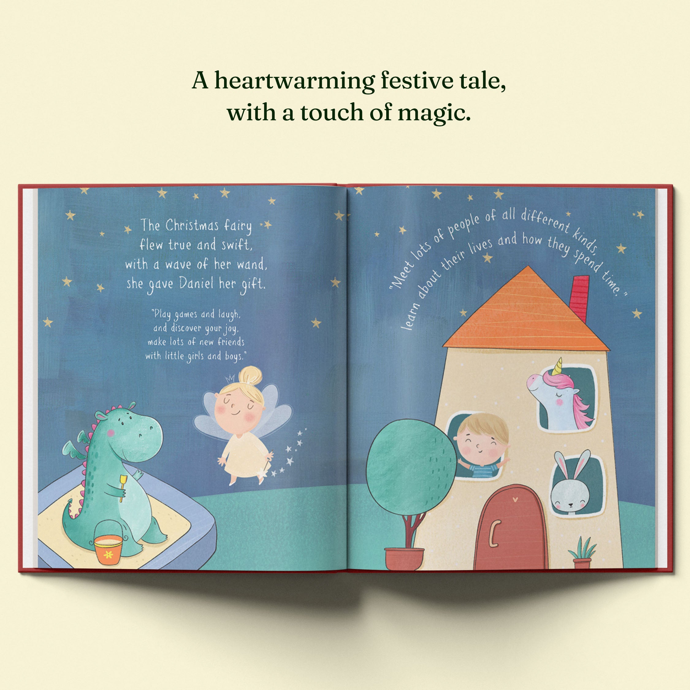Choose from our range of characters to best suit your child, selecting from skin tones and hair colors. Illustrated with gorgeously bright illustrations, your child is joined on their adventure by a unicorn and dragon. On the inside front cover we print a personalized message so they can treasure the book as a keepsake in years to come, for example: "Christmas 2024 - with love from Mommy and Daddy xxx"