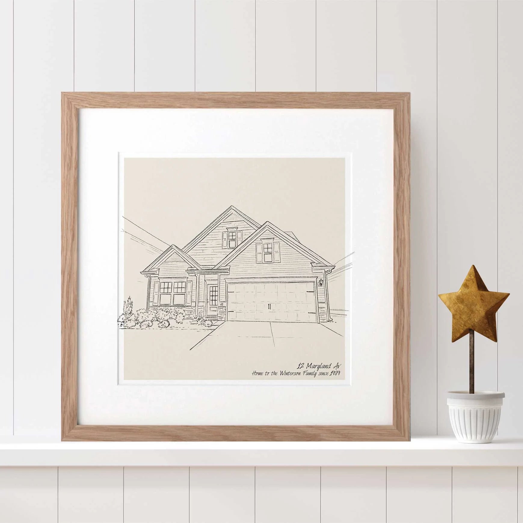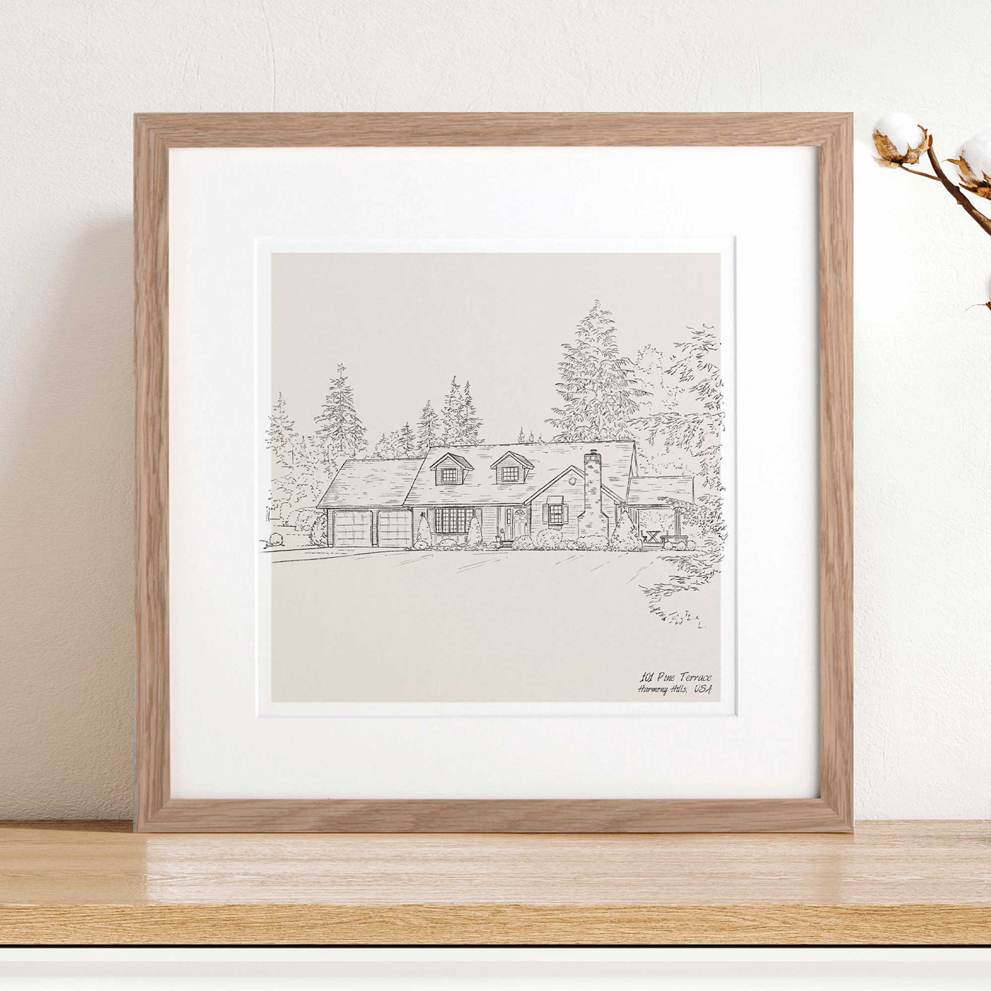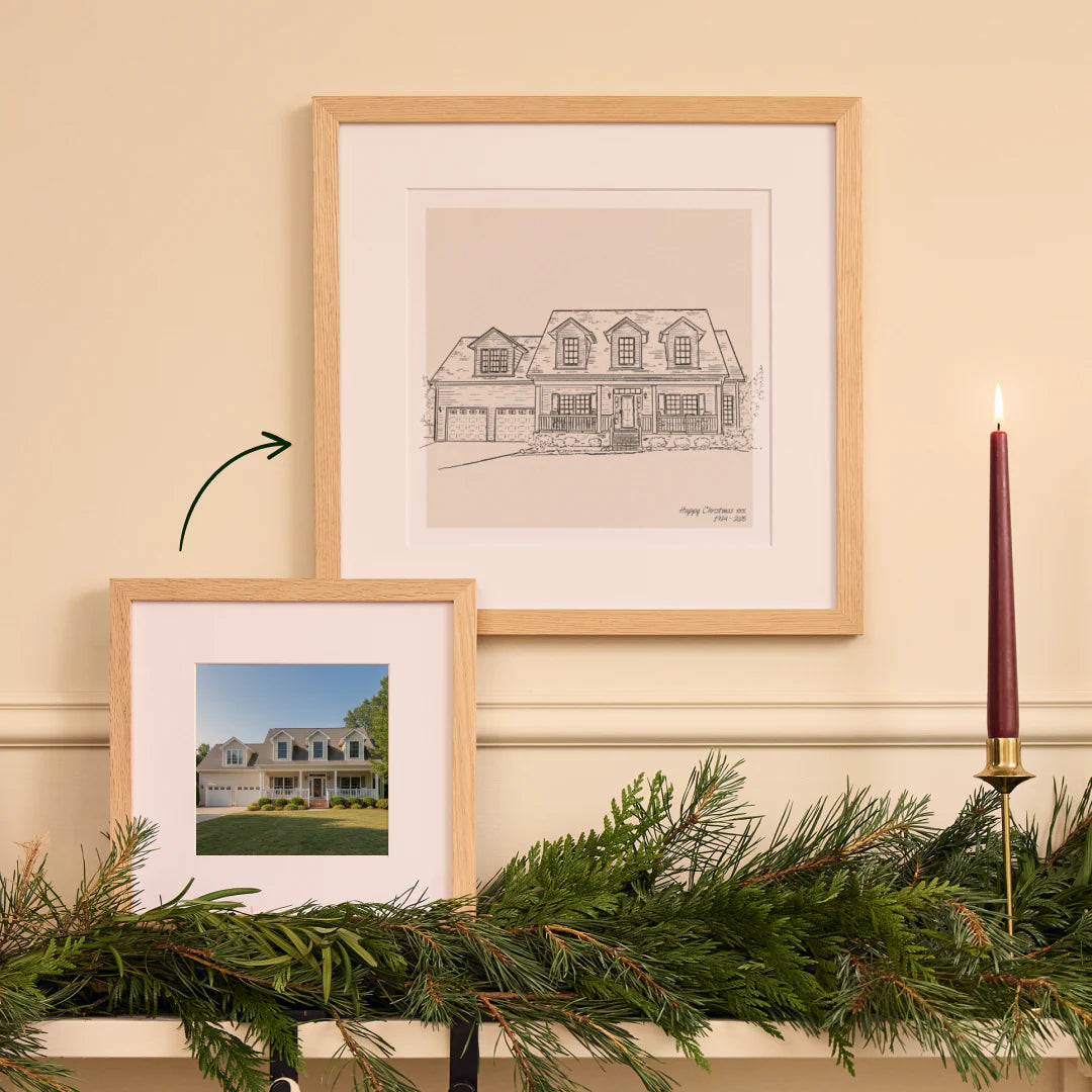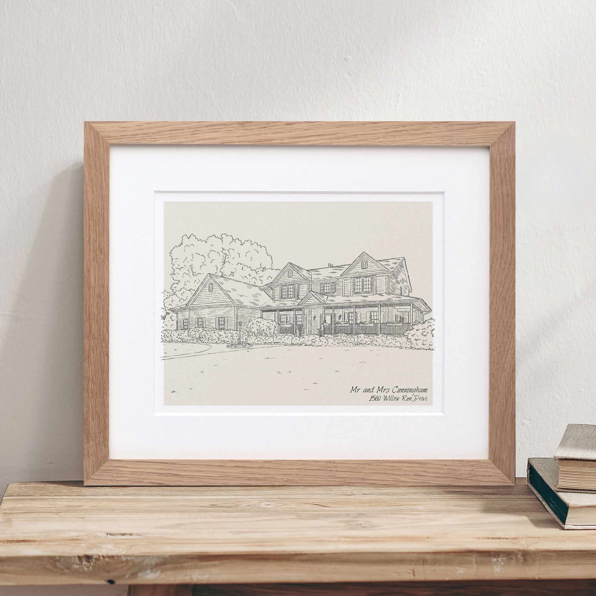 A beautiful black & white sketch of someone’s home based on a photo provided by you, hand drawn by our amazing team of artists. We can sketch your family home, wedding venue, car or pet - the perfect personalized gift for friends or family.