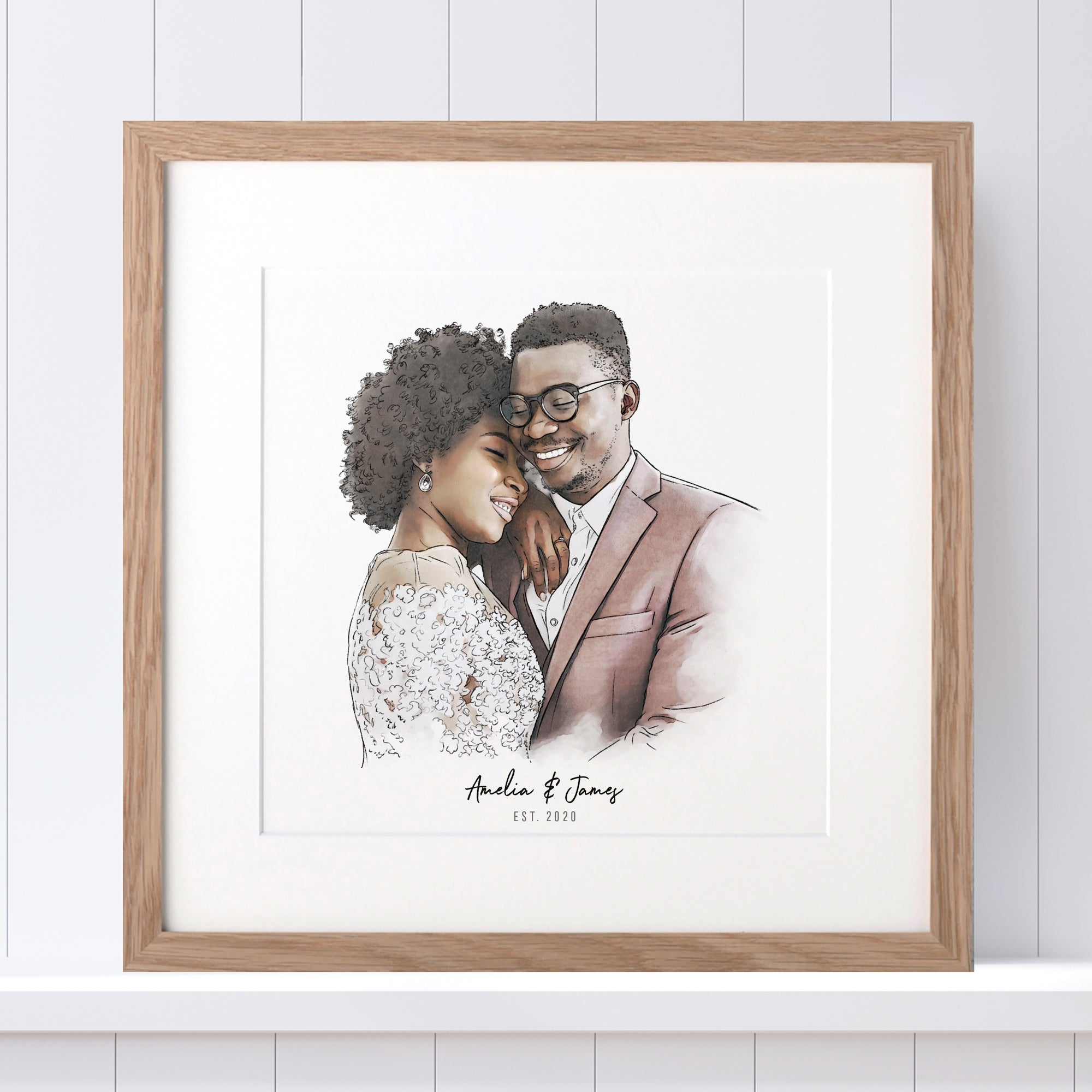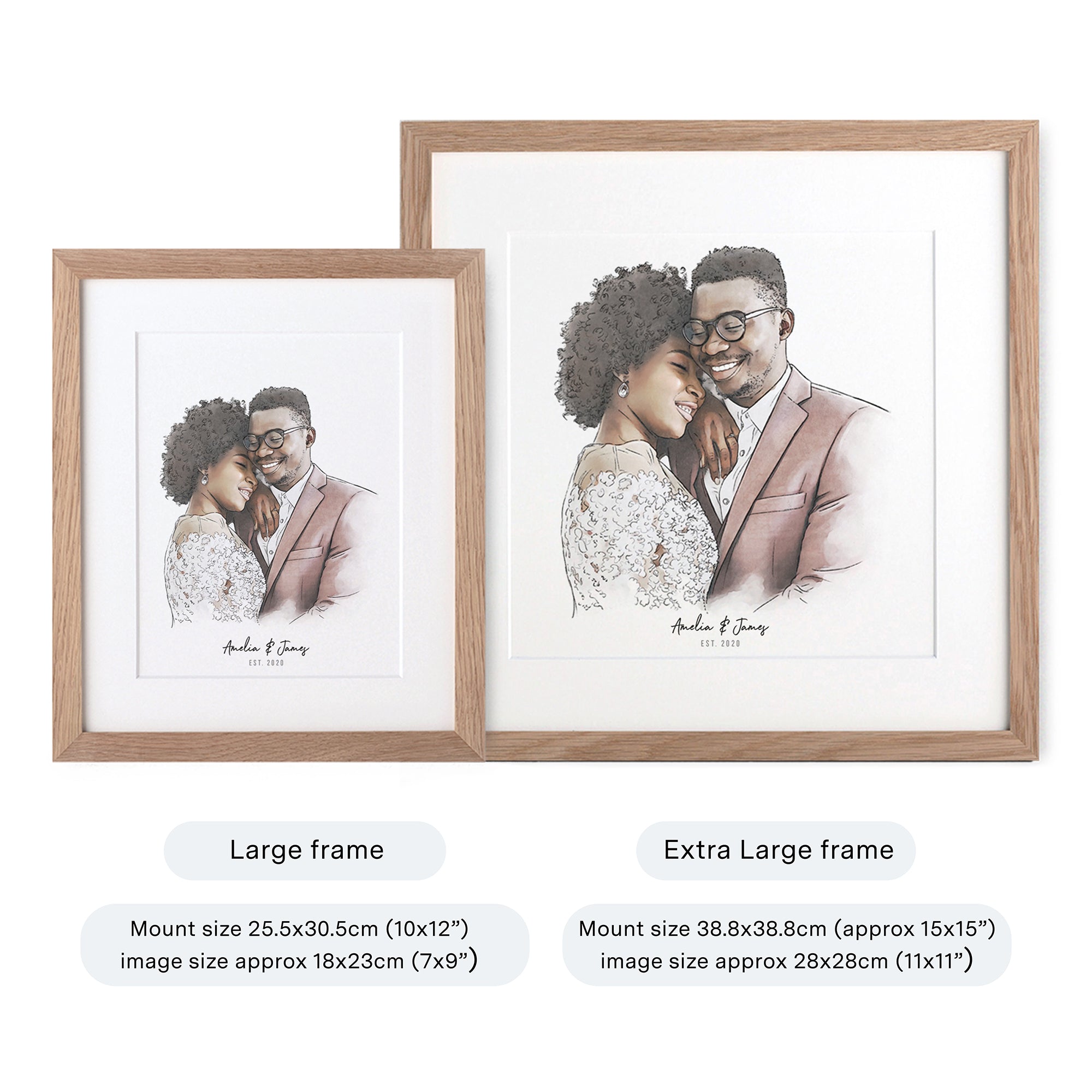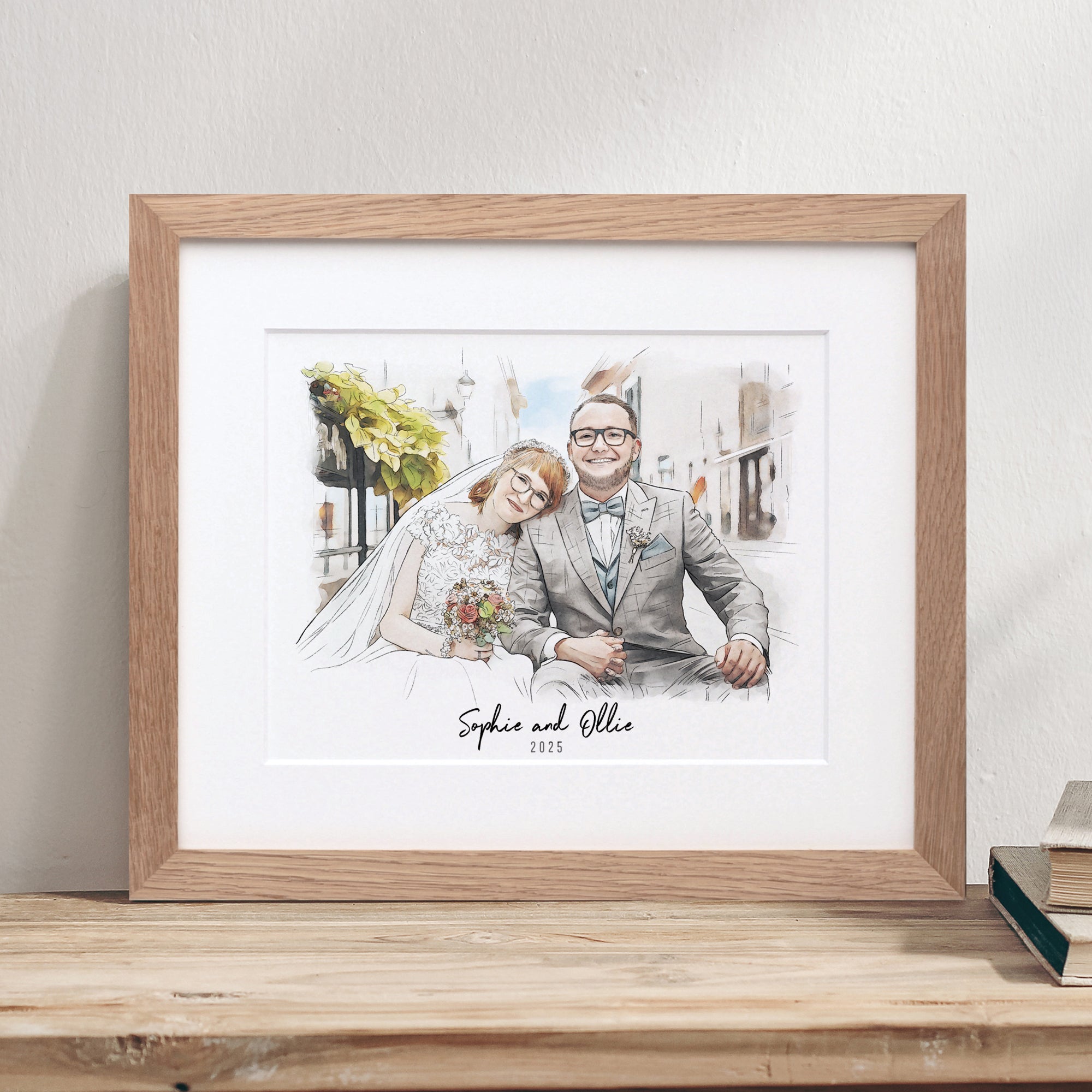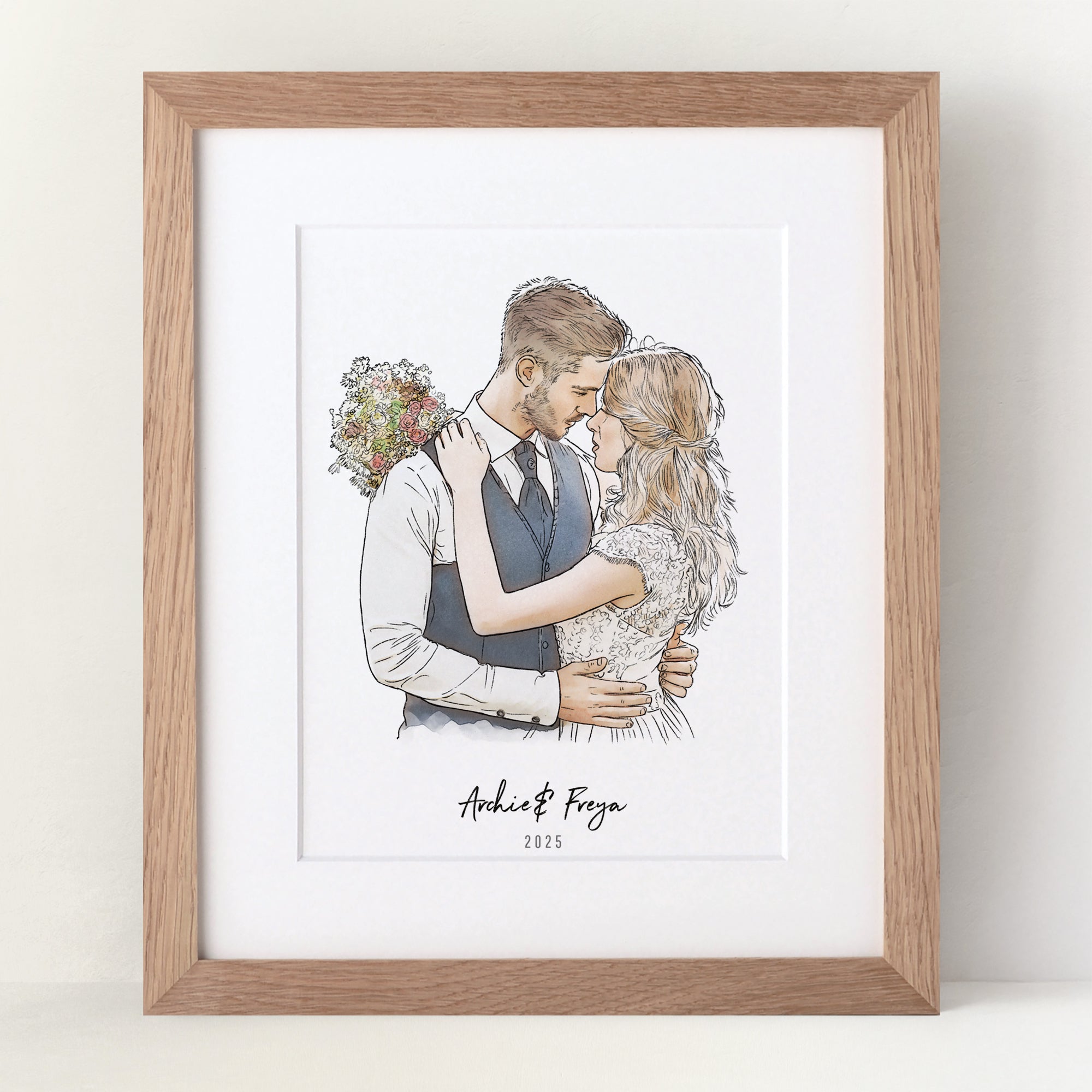 Each illustration starts with a digital sketch based on your photo, which is then enhanced by our talented artists, adding unique details and personal touches. We never use AI or filtersβ€”just authentic craftsmanship from our team. The final artwork is then printed on high-quality, acid-free artist paper.